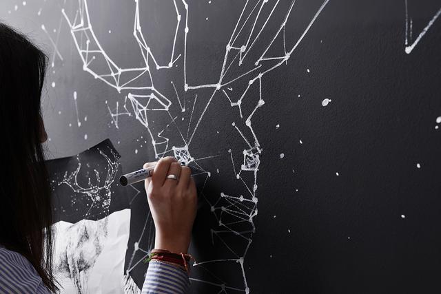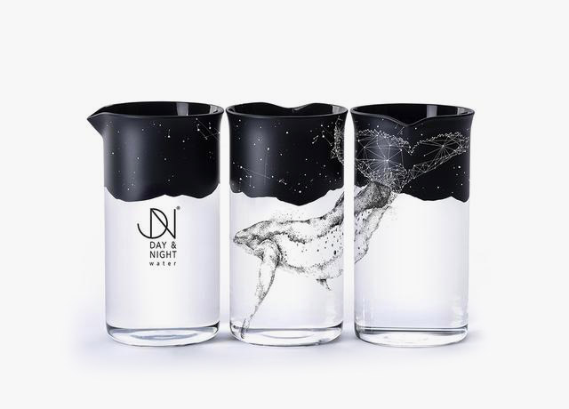 各種牛奶瓶、水杯、啤酒瓶都是黑白雙煞,整套拼合起來便是一副完整的畫面。