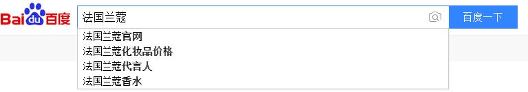 當搜索品牌的時候,百度會給出相關搜索推薦,這是什么概念,可以說是贏在品牌包裝的起跑線上,例如搜索法國蘭蔻,會出現(xiàn)百度推薦的法國蘭蔻官網(wǎng),法國蘭蔻香水等正面信息,出現(xiàn)這樣的情況,通常是因為用戶搜索過多,導致百度下拉框出現(xiàn)類此的關鍵詞,部分品牌的推薦詞中包含“真假”、“曝光”等詞匯,這個時候就需要利用百度下拉框工具來包裝品牌的搜索推薦。
